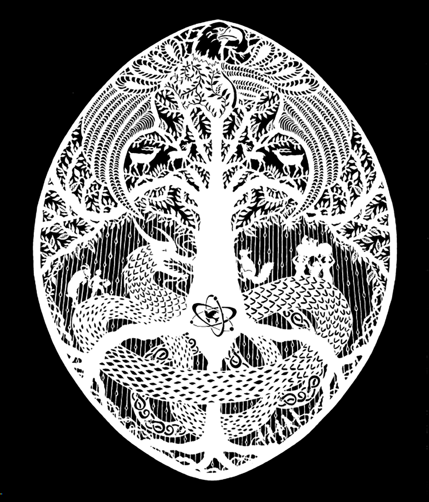 When Vejle visited this cradle of papercutting, she sought out a colleague with whom to collaborate on a project. Together, Vejle hoped, they could explore how their two cultures approach the same artistic medium. In April 2013, she met Professor Xiaoguang Qiao at the Central Academy of Fine Arts in Beijing, and they selected a common motif in Nordic and Chinese art—the dragon—to depict alongside each other. The dragon figures prominently in Chinese culture throughout time and is an auspicious symbol (called “long”), while the Norse dragon is most often associated with the Viking period and the Middle Ages as an apotropaic (evil-repelling) symbol.