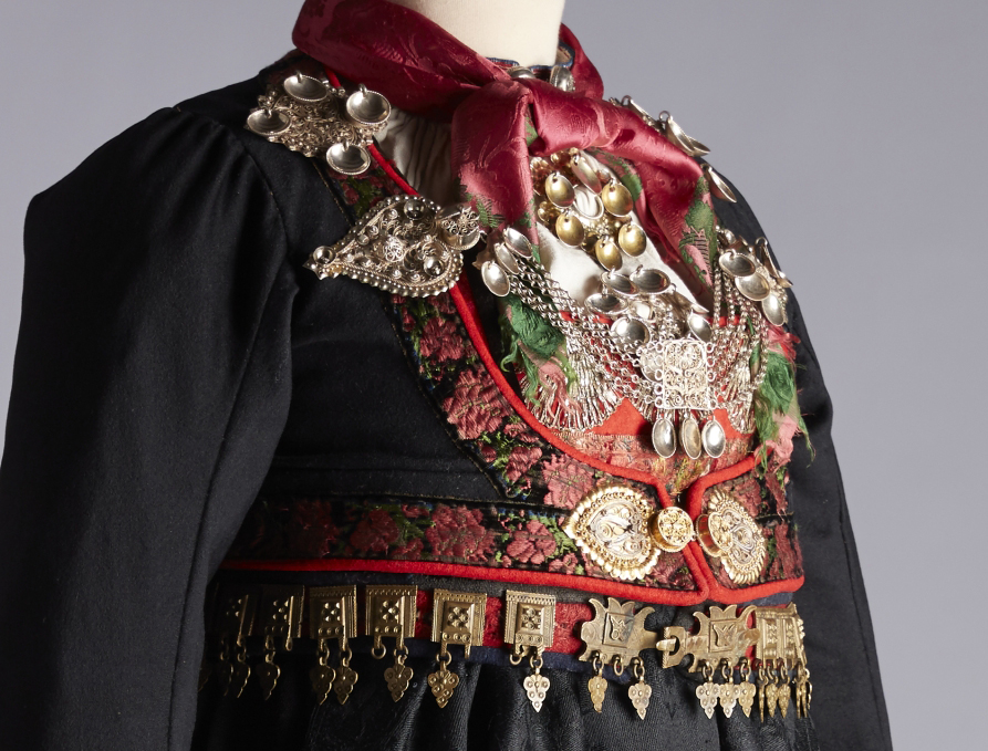 - Bodice of Skjælingstakk with jewelry. Photo: Norwegian Folk Museum, Oslo