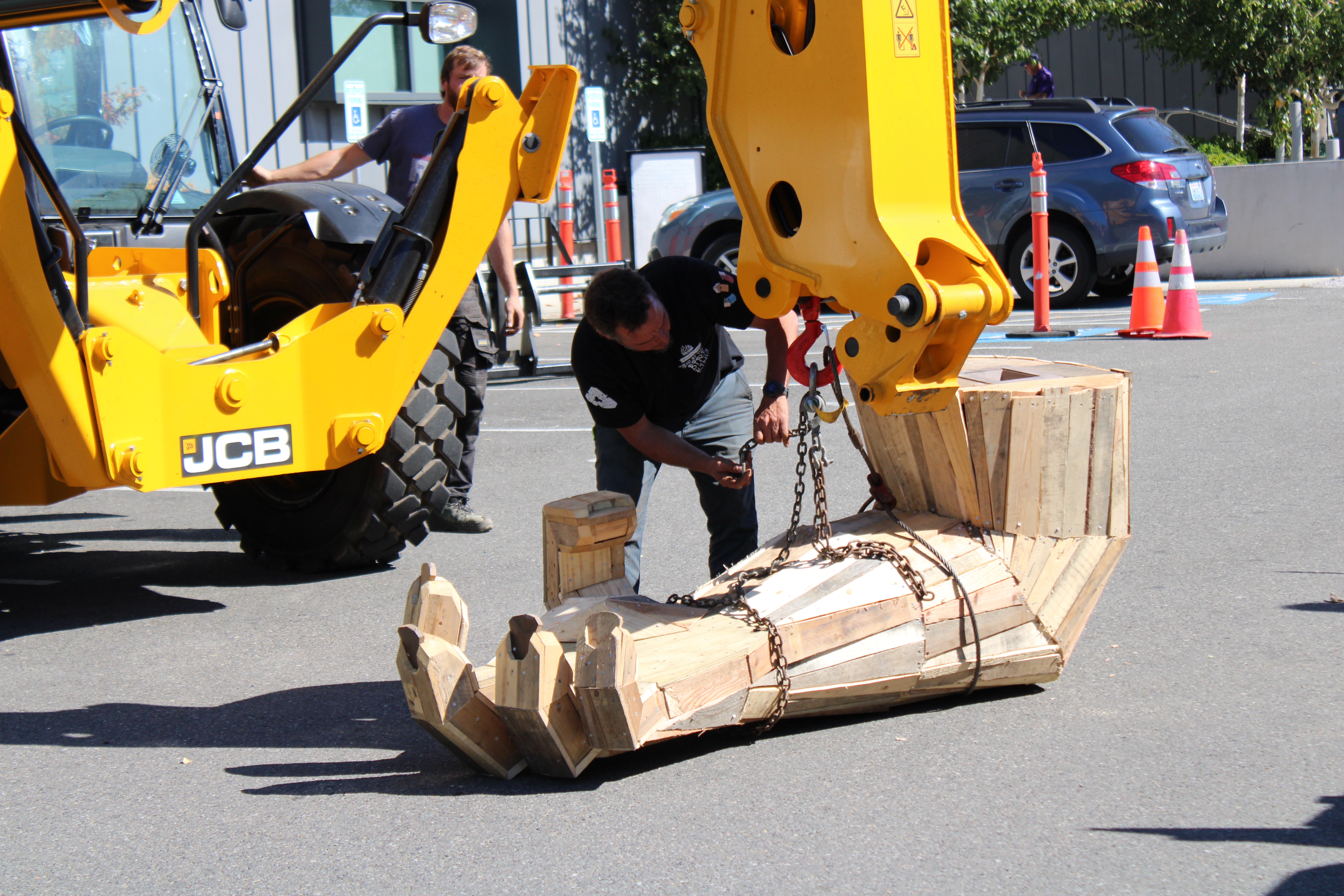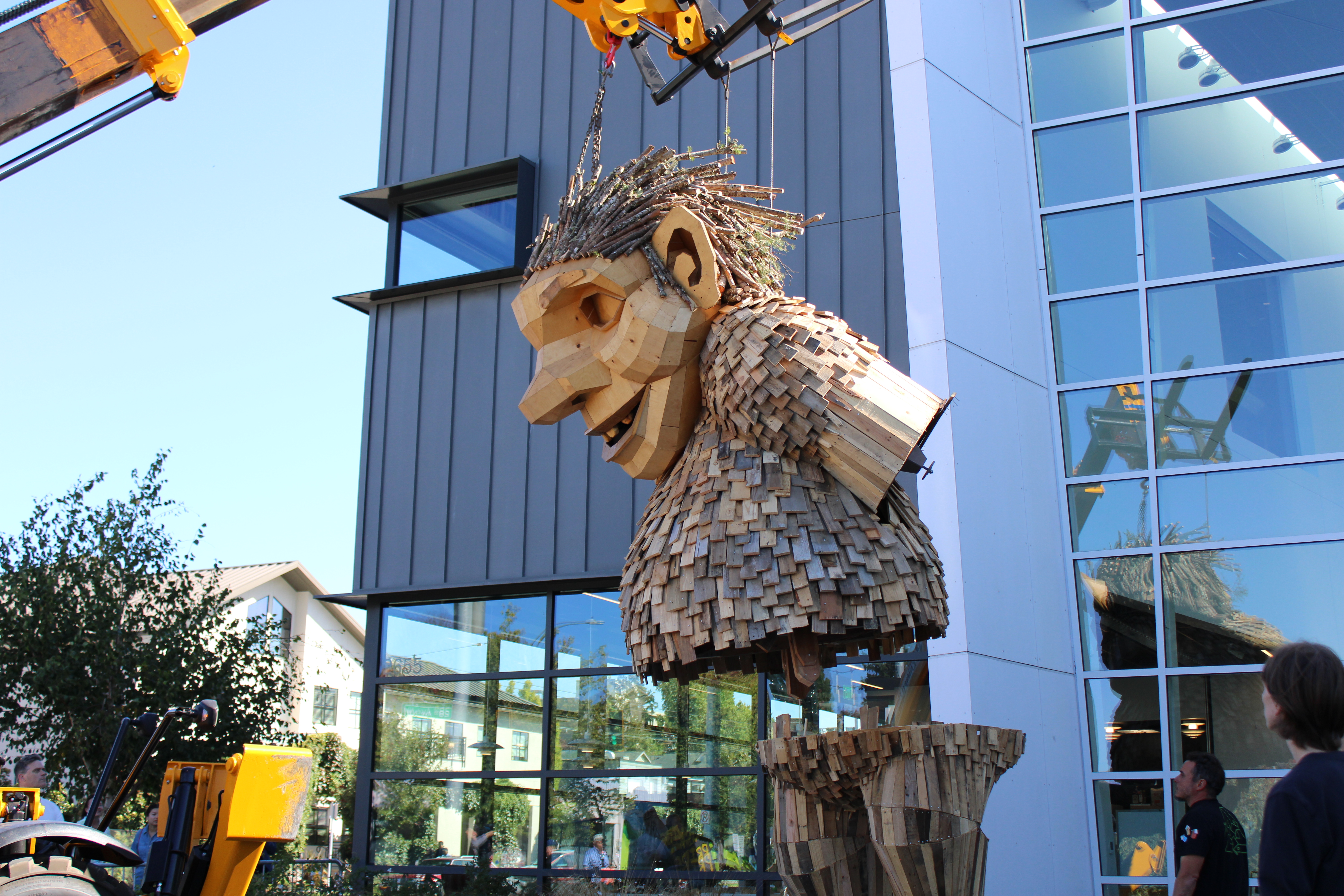 The head, hands, and feet of each troll were built in Denmark by Dambo’s team, and the rest of the sculptures were constructed onsite with materials donated from local businesses and individuals.