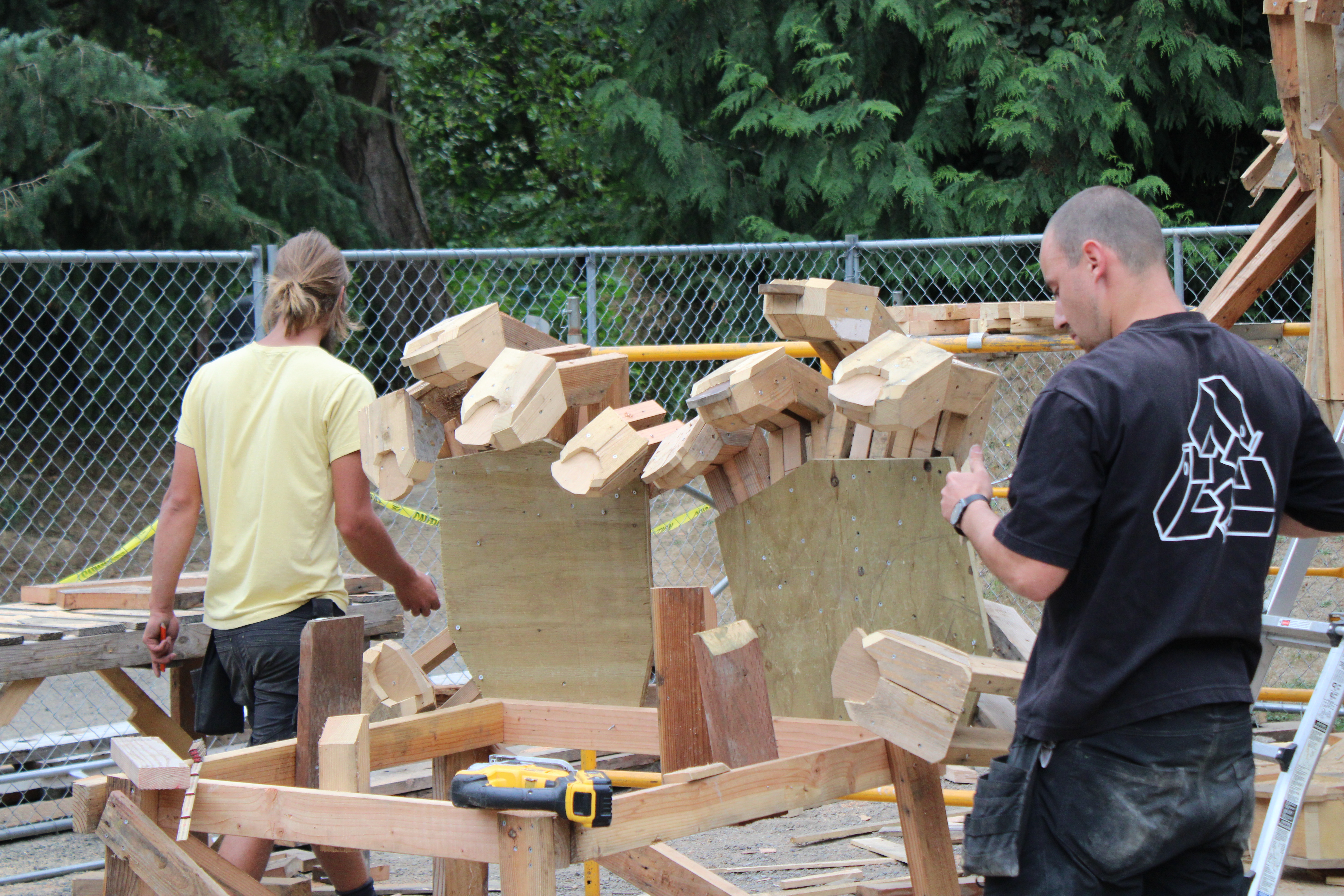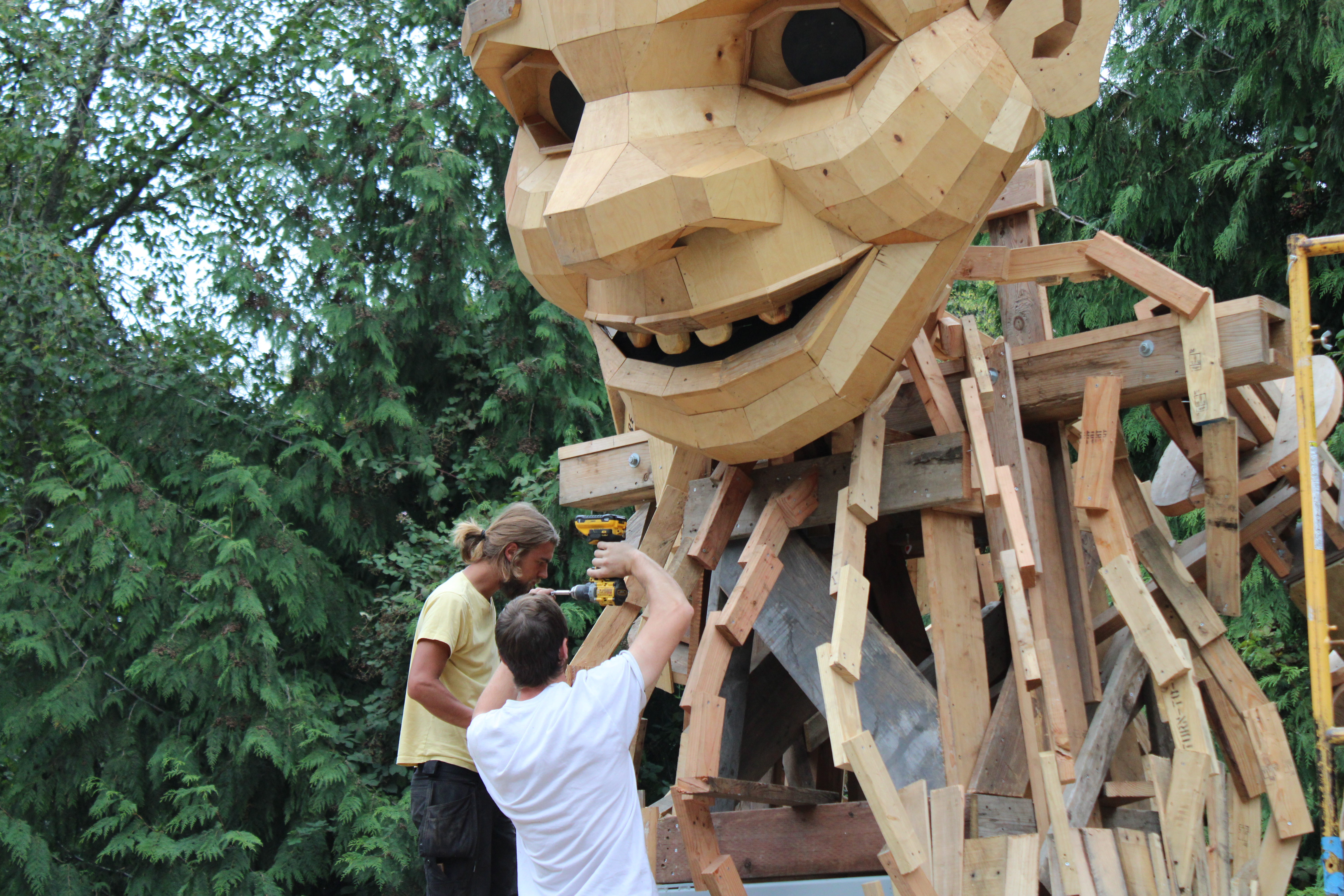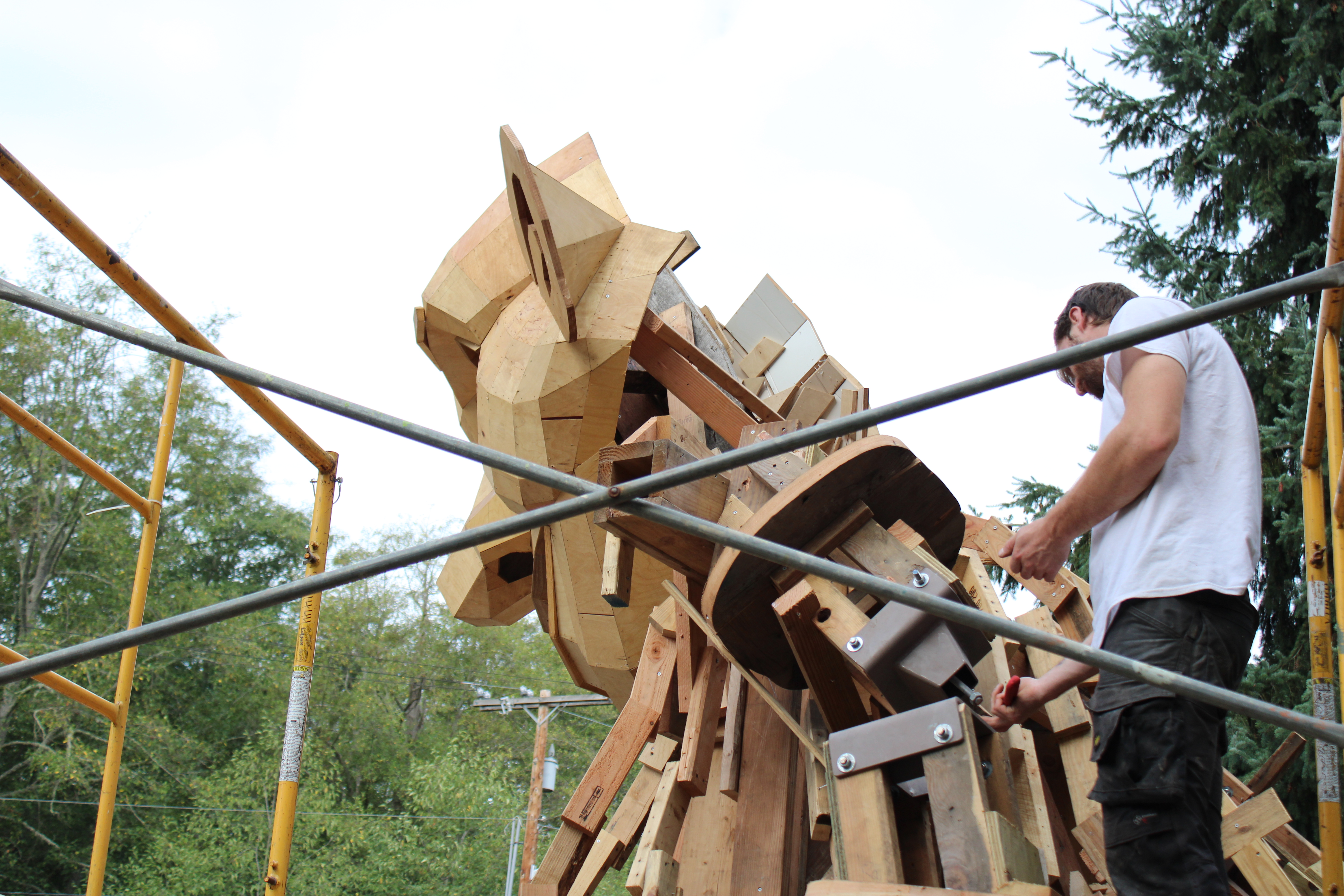 How do you begin to build larger-than-life troll sculptures? With recycled materials, of course! Each troll was made from 140-200 used pallets, 600-800ft of structural lumber, 10,000 screws, and assorted decorative elements, including shells, tree branches, and stones.