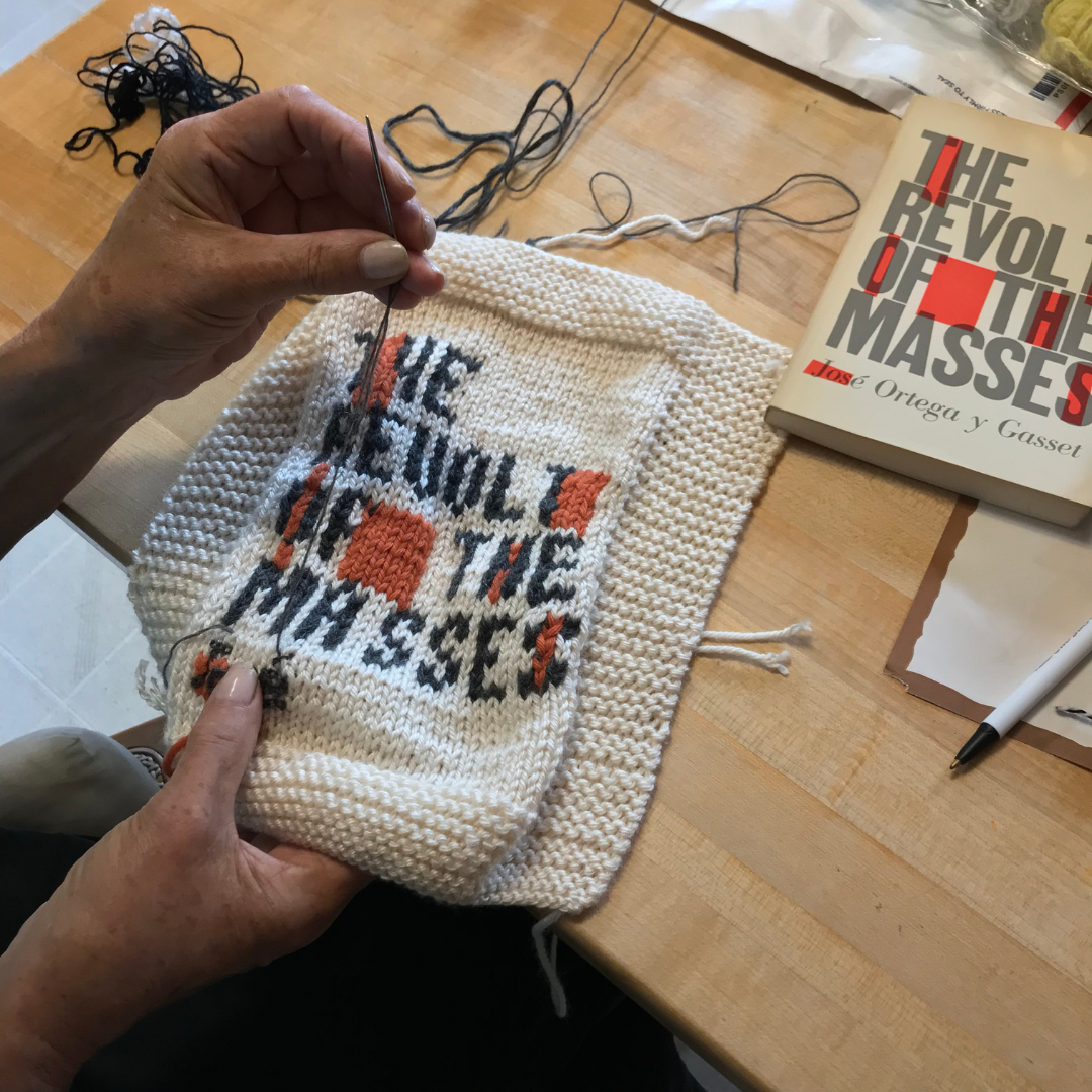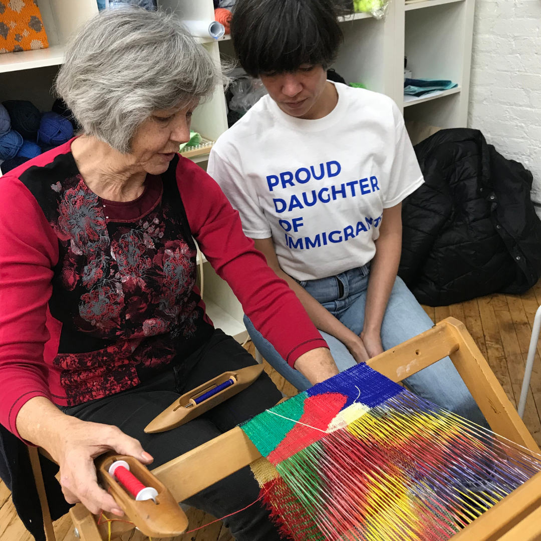 Though currently located on opposite coasts, sisters Janelle and Lisa often create project-based work as a pair under the name “Las Hermanas Iglesias” (Spanish for “The Iglesias Sisters”), a reference to the Spanish surname of their Dominican father Bienvenido. They have individual artistic practices and careers: Janelle is Assistant Professor of Studio Art at University of California San Diego and creates objects and installations that are three-dimensional, while Lisa is Associate Professor of Art at Mount Holyoke College and prefers the two-dimensional mediums of drawing and painting. They impart their expertise as educators, nurturing aspiring artists. However, when partnering on a project, their work considers their roles as sisters, mothers, and daughters. For the show M(other) Tongues: Bodhild and Las Hermanas Iglesias, they enlist the textile talents of their Norwegian-born mother Bodhild, a fiber artist, to expand the conversation across mediums and become “Familien Iglesias” (“Iglesias Family”).